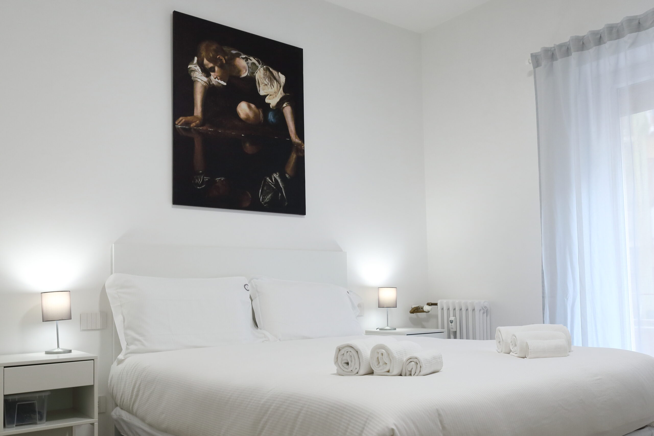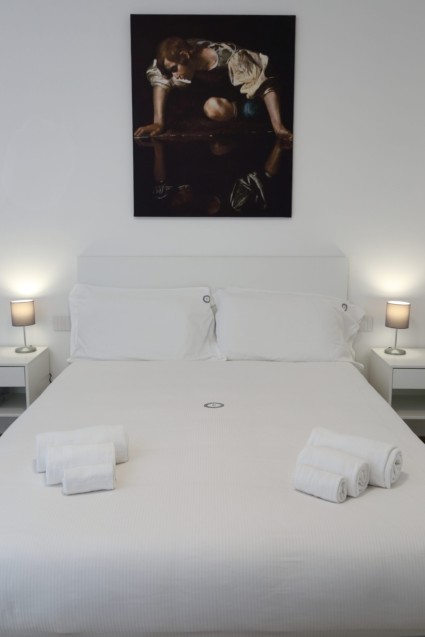 La Caravaggio è una camera matrimoniale Deluxe (con possibilità di 1 letto singolo aggiuntivo); ha un confortevole bagno interno ed un ampio balcone con affaccio sulla strada. È rifinita con materiali pregiatissimi, confortevole, ariosa, luminosa e dotata dei dispositivi tecnologici più avanzati: Wi-Fi gratuita; climatizzatore automatico aria calda/fredda; TV 55”; frigo bar zero rumore; materasso e cuscini di qualità eccelsa. Il bagno è dotato di idroscopino per la pulizia del WC, di sanitari di altissima qualità e di un pregiatissimo mobile lavabo in vero quarzo.